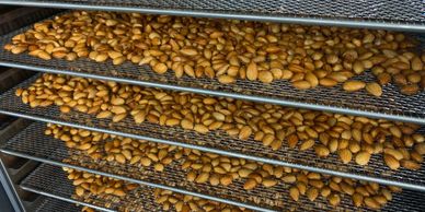 Once the nut has been soaked, we gently dehydrate to remove excess water and bring the nut back to an enjoyable edible texture. The nut is still alive after this process.
